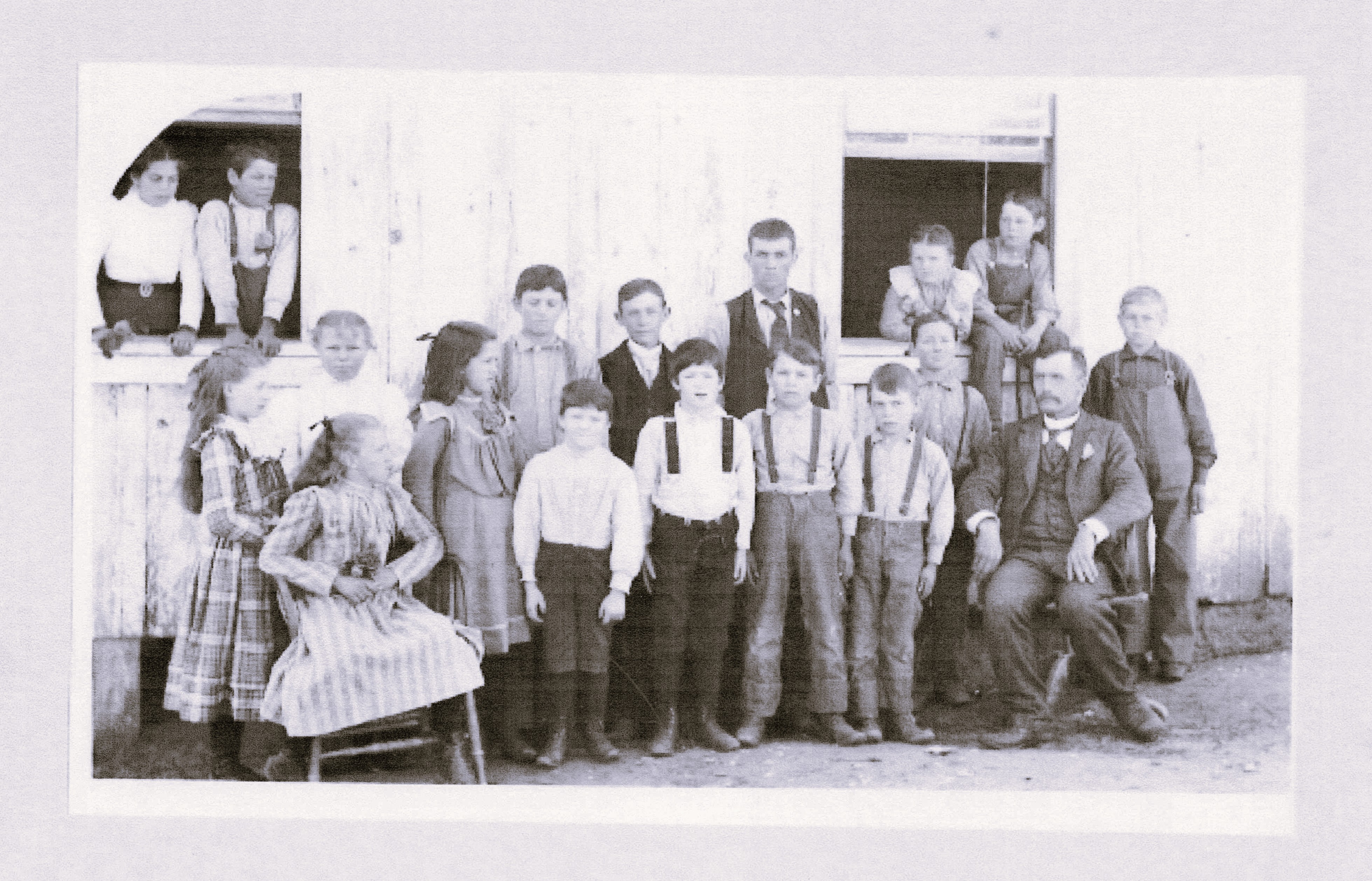 Willow Brook School Eldridge Koontz - tall boy in back row foster-sister Jean LaTouche in window. |