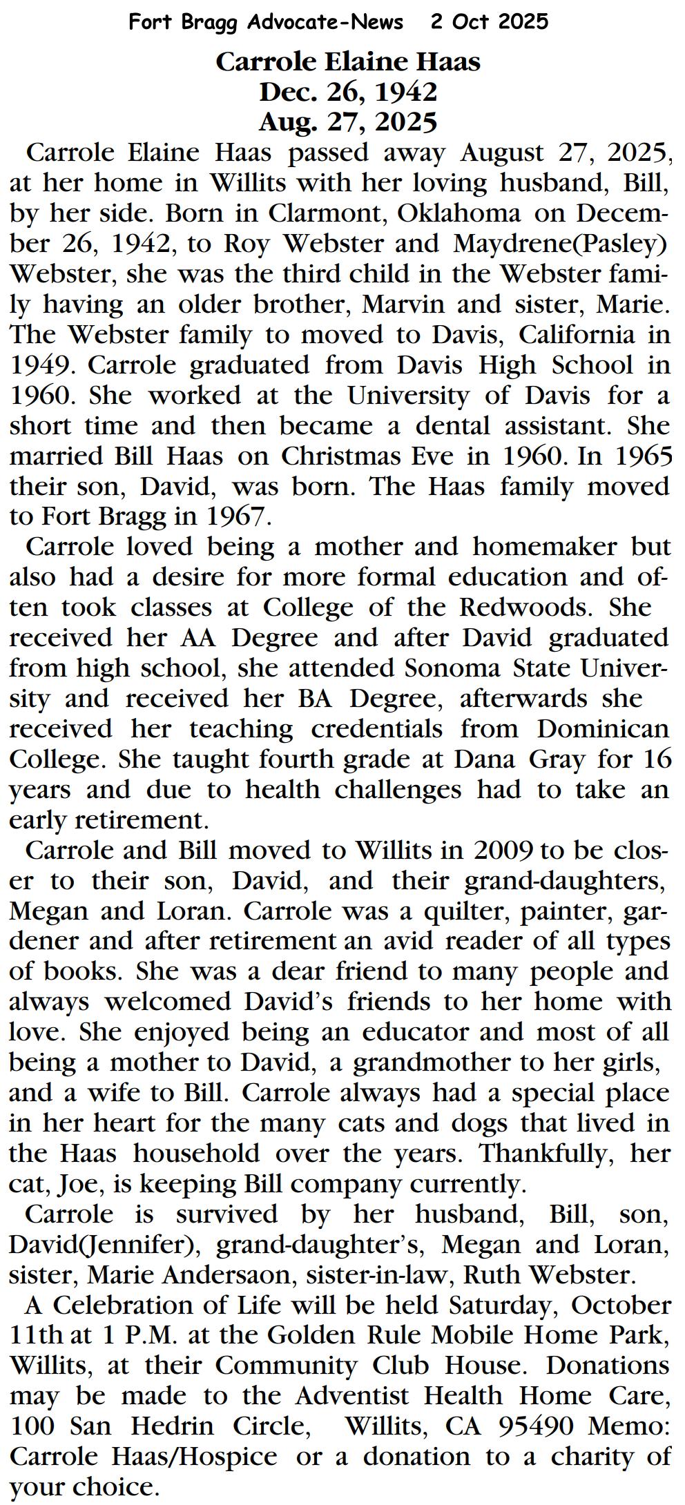 Haas, Carrole Elaine