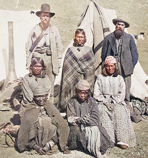 At Col. Alvin C. Gillem's camp near the Lava Beds in 1873 were, in back row, Capt. Oliver C. Applegate, Winema, and Frank Riddle; middle row, Lac-el-es and Martha Mainstake; and front row, Me-hu-no-lush and Sau-kaa-dush