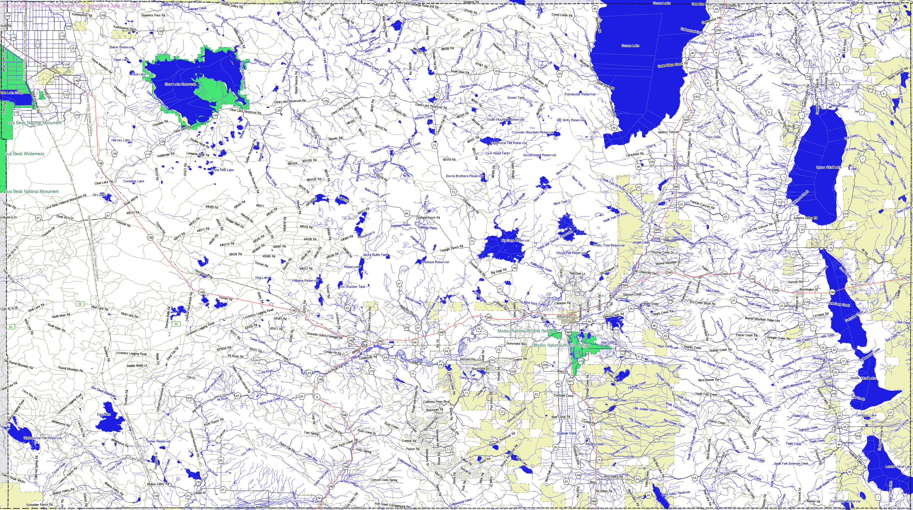 Large detail map of Modoc county