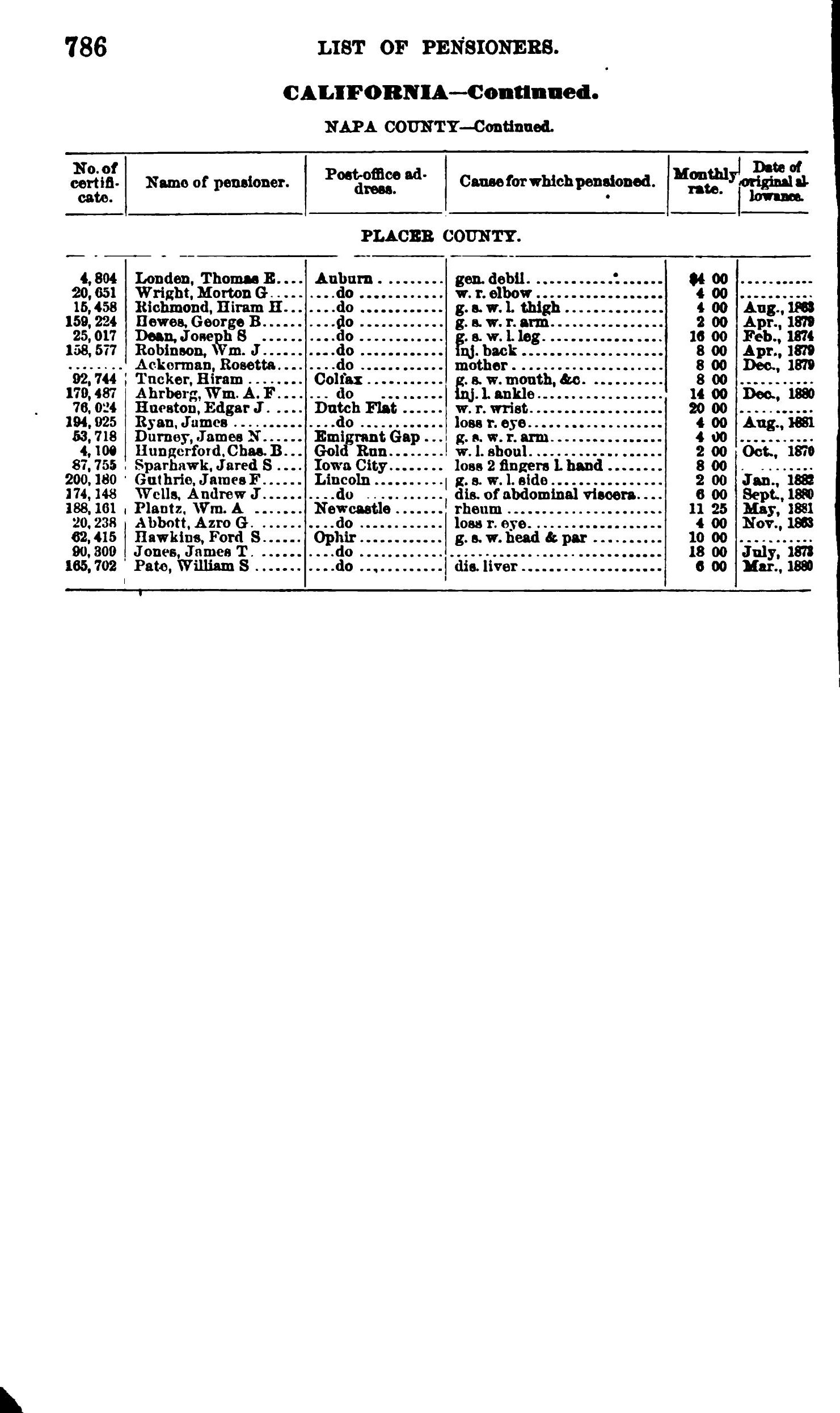 For ease of searching, the Placer County Genealogical Society has consolidated the names from all six categories into a single, alphabetical listing. There is some duplication of names. However, approximately 665 Placer County service men and women are identified.
